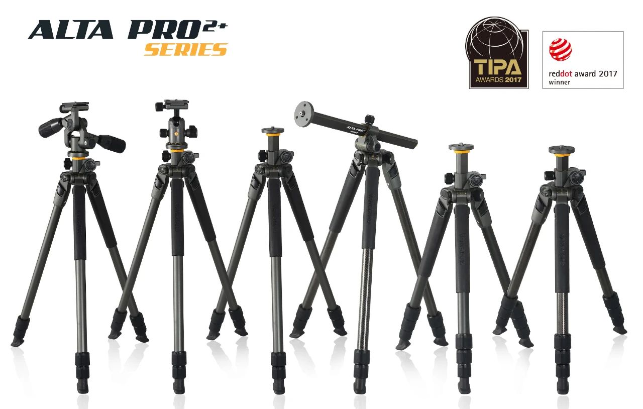 Alta Pro2+系列属于精嘉专业级别脚架,拥有可灵活运用在多种商业拍摄的万向中轴横置系统,Alta Pro2+是专门为追求专业摄影效果,多种灵活操作模式的爱好者所设计。