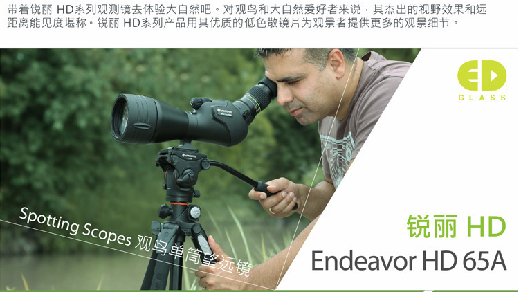 Endeavor ED望远镜,它具备高锐度、高清晰度、低色散、优良的透光率等特点,为用户带来生动、清晰的影像。时尚轻巧的人体工程学设计,稳定、舒适。