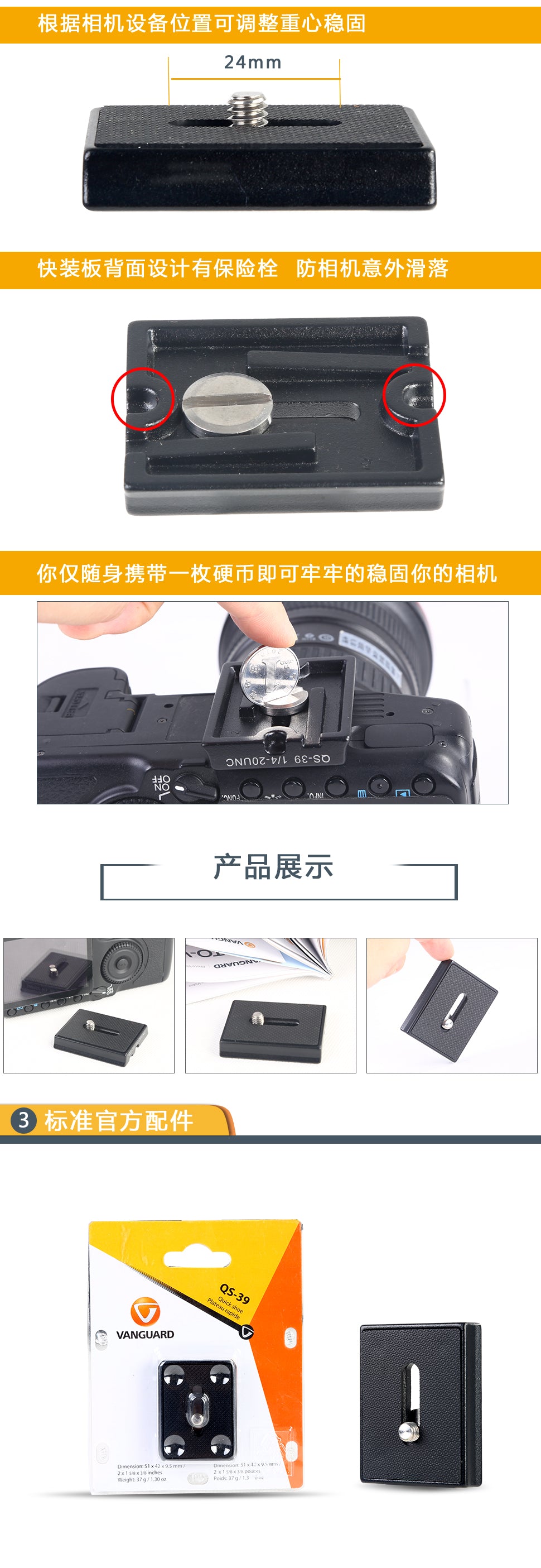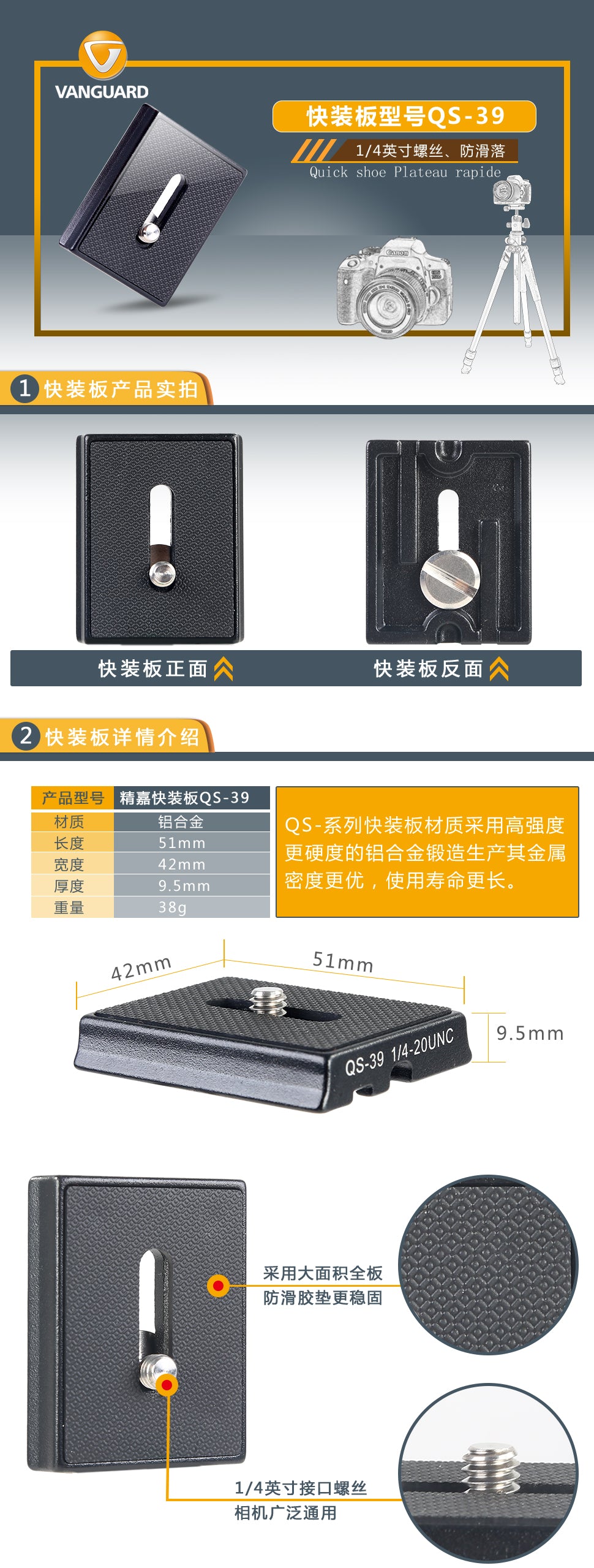 精嘉 QS-39 | 精嘉 云台 相机 快装板 卡扣 |雅佳规格 ARCA 型 |