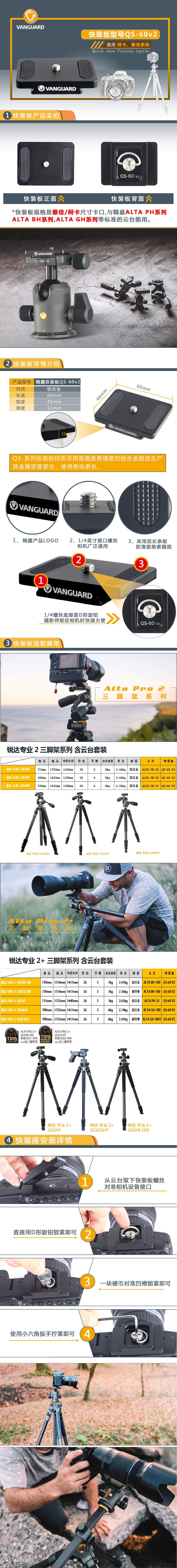 精嘉 QS-60 V2 | 精嘉 云台 相机 快装板 卡扣 |雅佳规格 ARCA 型 |