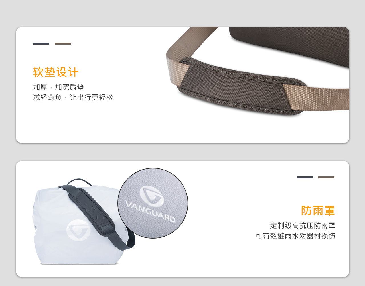 微单相机兼有轻量与不输给单反的画质和镜头选择,也越来越丰富是摄影界新的流行设备。VEOGO是精嘉特别针对微单族群所规划,雅致的外观与时尚的流线设计,轻量的表面材质与厚实的保护型缓冲内布与分段,实现了有份量的收纳,雅典时尚的外观兼具摄影与日常包用途,人们安心的保护性能。系列有两种双肩与三种单肩包的类型,所有类型提供橄榄绿与时尚黑的两种颜色选择。精嘉在国际摄影配件市场深耕30年以上,只为了不断帮助摄影发烧友,户外爱好者与野外冒险家提供更好的优质体验,致力于跨产业开发整合与一站式服务。