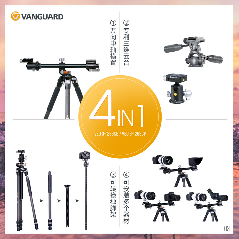 精嘉 VEO 3 三脚架系列 | 专业 单反 摄影 摄像 三脚架 | 中轴横置 万向 | 旅行尺寸 | 球形云台 | 三维云台 | 铝合金碳纤维 | 雅佳规格 | 含 快装板/卡扣 | 高承重 | 长焦镜头 | 索尼 佳能 尼康 微单 单反